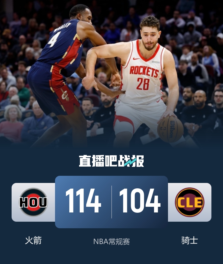 11月20日讯 NBA常规赛今日继续开打,东部第二的骑士坐镇主场迎战西部第三名的火箭,目前火箭取得4连胜,骑士也取得两连胜。
